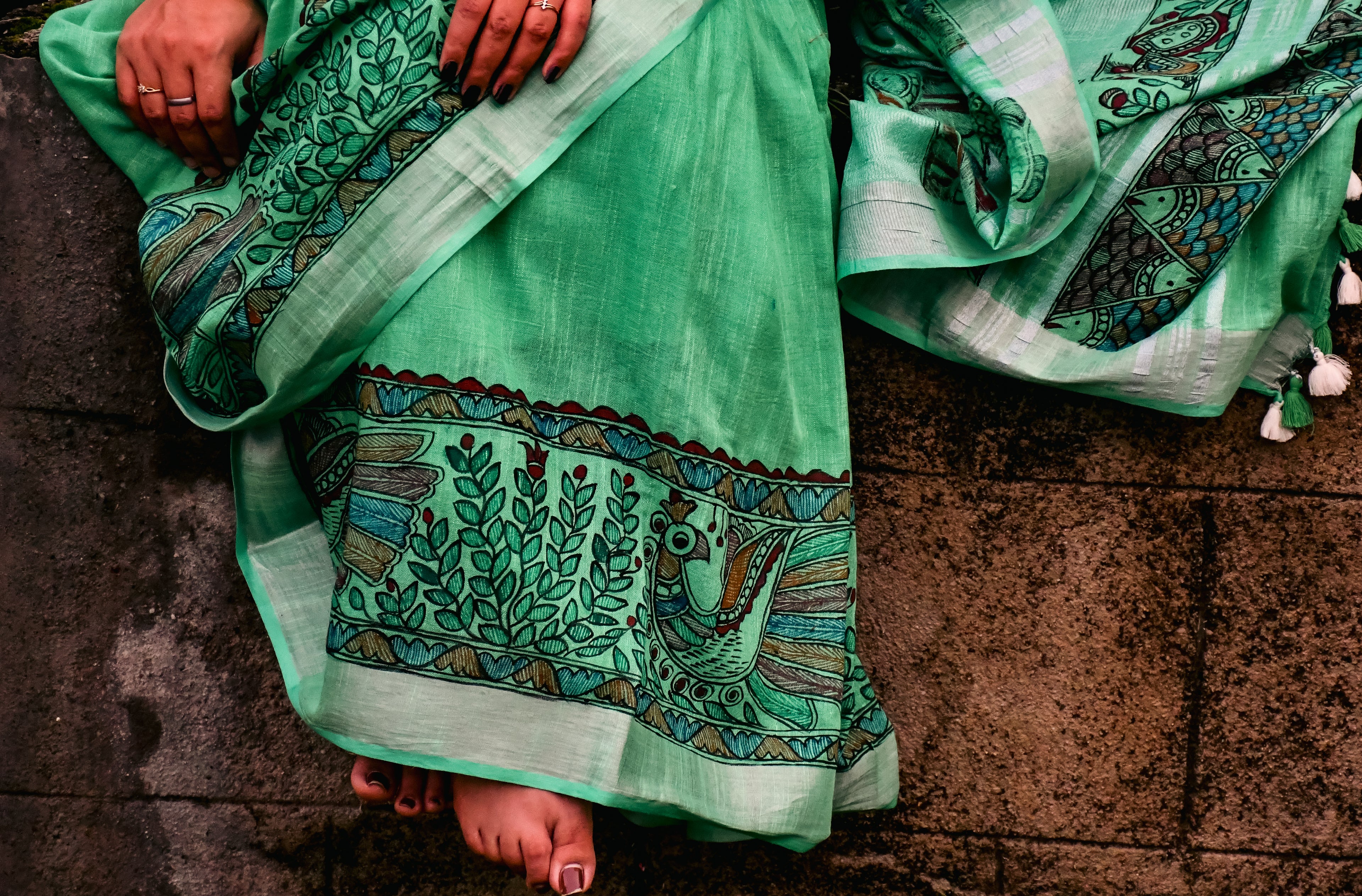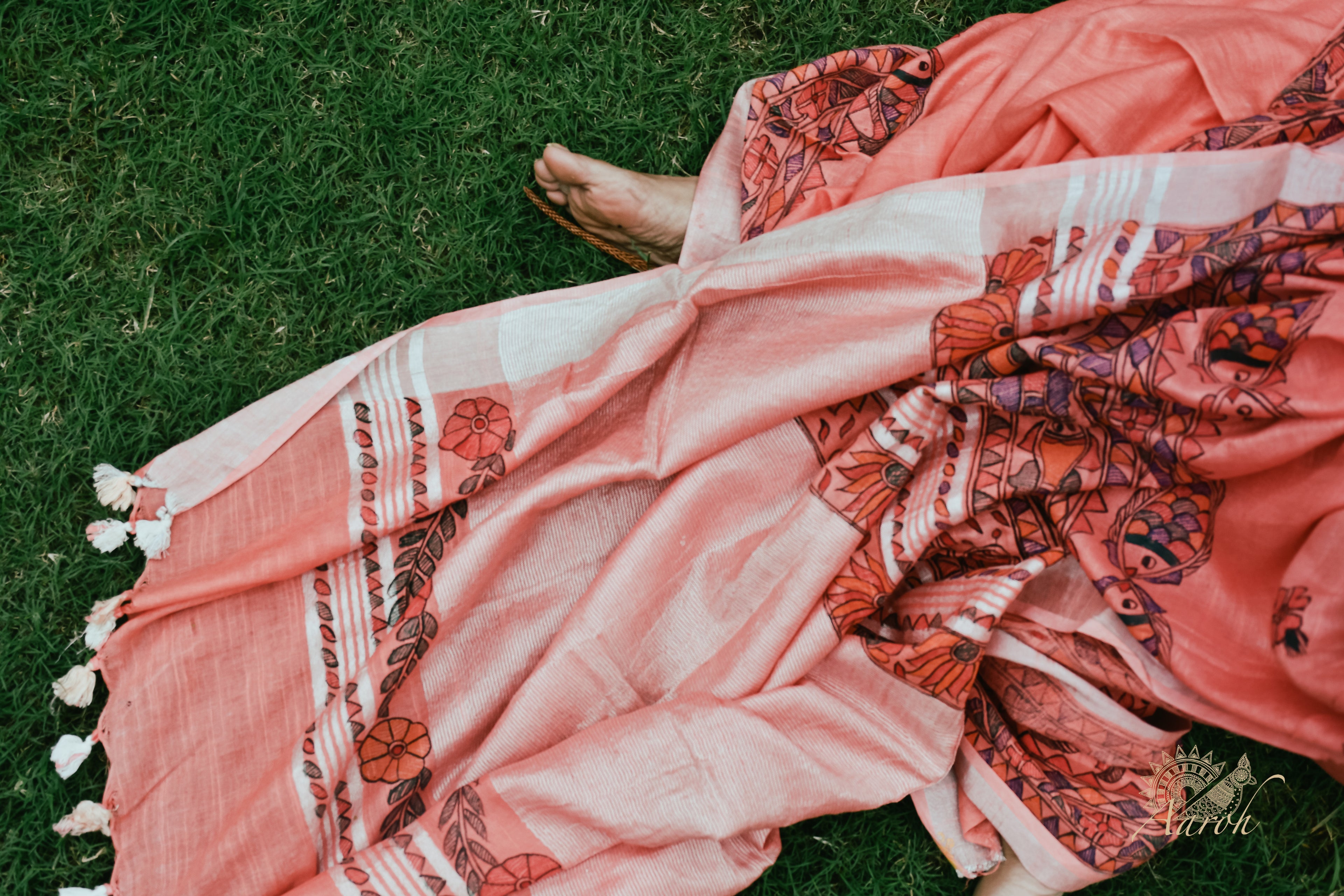 SOHA - Handpainted Madhubani Cotton Linen Saree